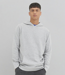 90% organic cotton/10% viscose. Soft peached fabric with brushed inner.Drop shoulder style.Fashion fit.Hood with no drawcord.Taped neck.Front pouch pocket.Ribbed angled cuffs and hem.Unbranded size label.